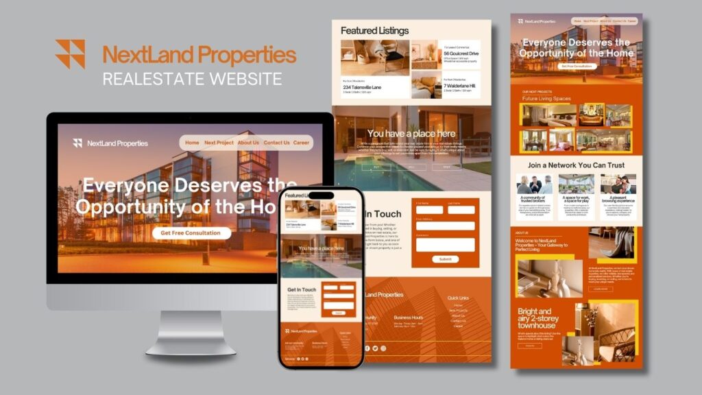 NextLand Properties approached us with a vision to redefine how people discover their next home or investment. They wanted a sleek, modern real estate website that combines aesthetics with functionality to deliver a seamless user experience. This project represents a mockup design showcasing our expertise in real estate website creation. While still not live, it demonstrates our ability to blend functionality and style for an impactful online presence.